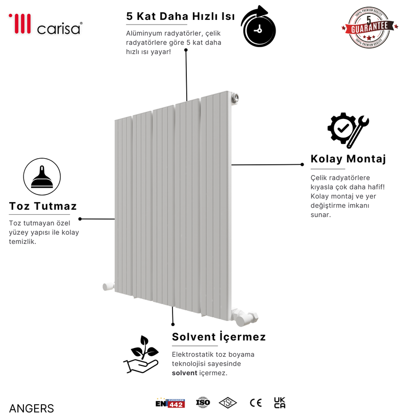 Carisa Angers Alüminyum Radyatör Beyaz Standart Bağlantı