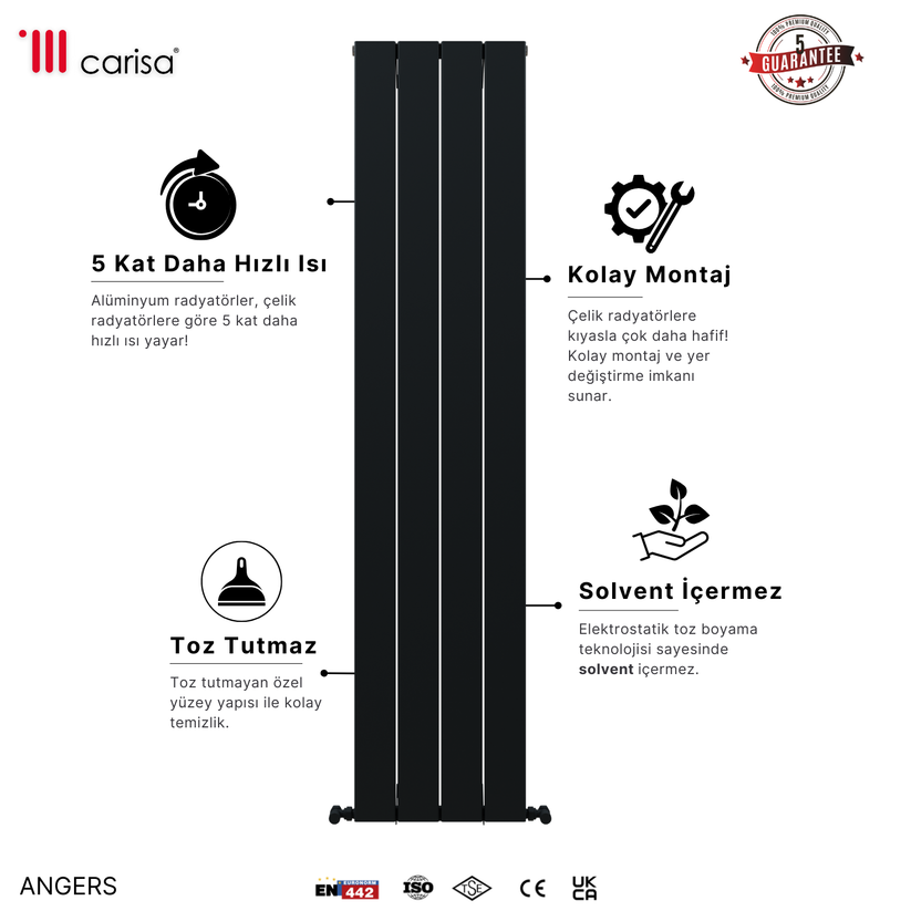 Carisa Angers Dikey Alüminyum Radyatör Modern Tasarım Siyah