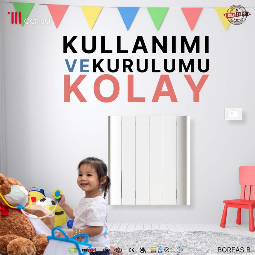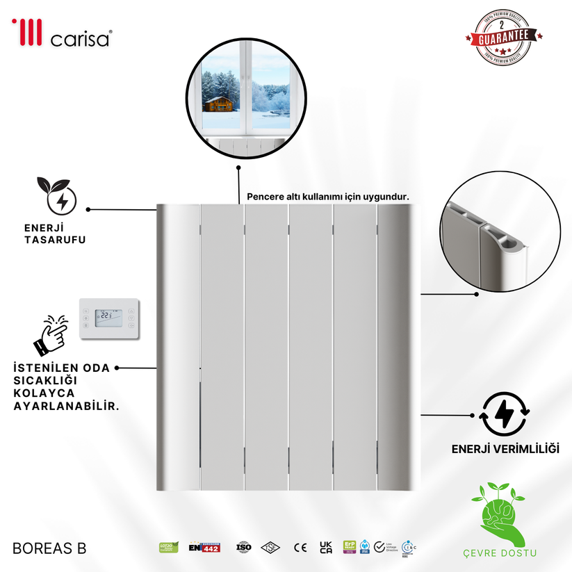 Carisa Boreas B Yatay Elektrikli Radyatör Modern Tasarım Beyaz