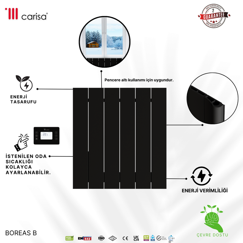 Carisa Boreas B Yatay Elektrikli Radyatör Modern Tasarım Siyah