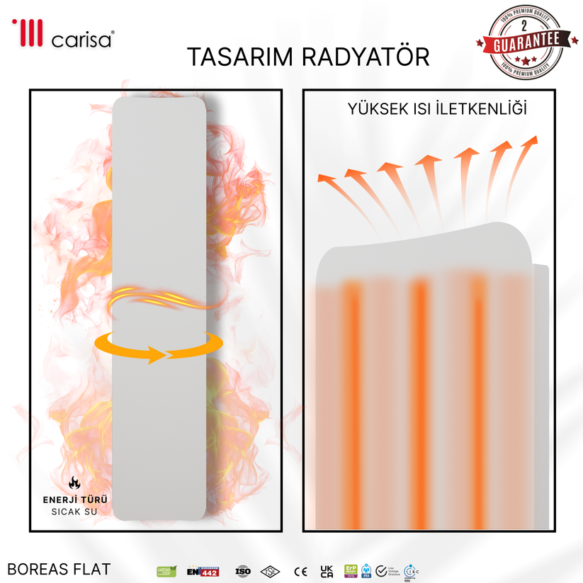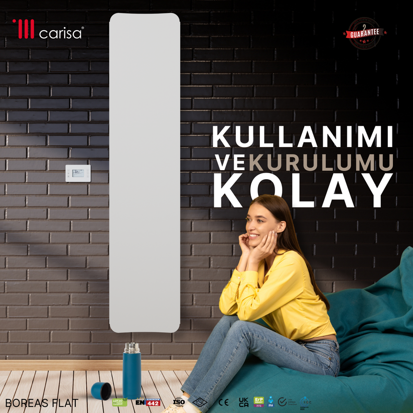 Carisa Boreas Flat Dikey Elektrikli Radyatör Modern Tasarım Beyaz