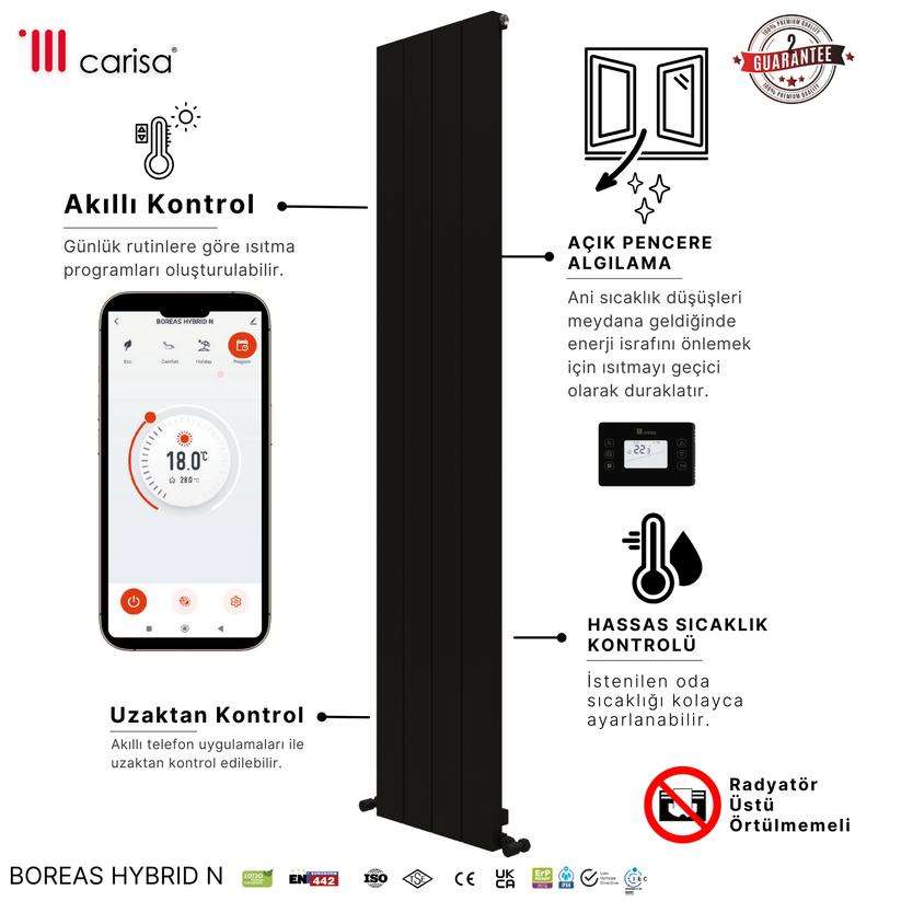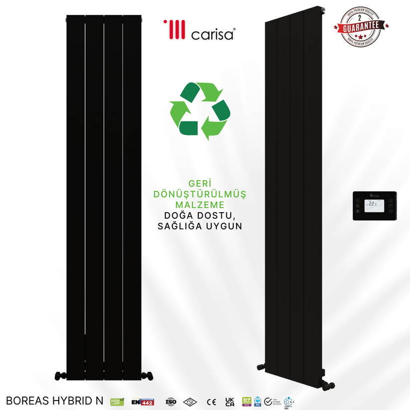 Carisa Boreas Hybrid N Dikey Elektrikli Radyatör Modern Tasarım Siyah
