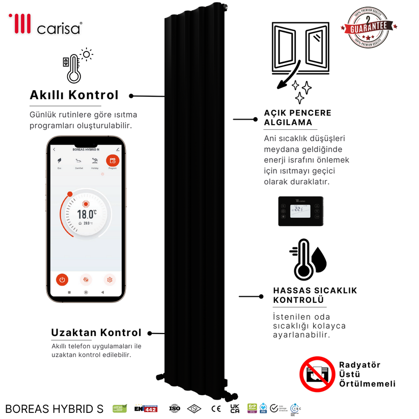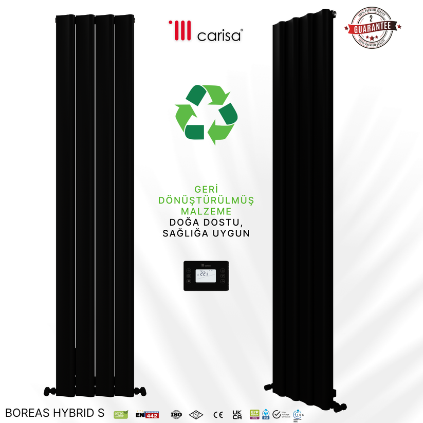 Carisa Boreas Hybrid S Dikey Elektrikli Radyatör Modern Tasarım Siyah