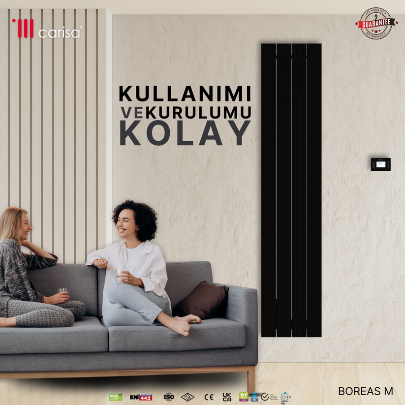 Carisa Boreas M Dikey Elektrikli Radyatör Modern Tasarım Siyah