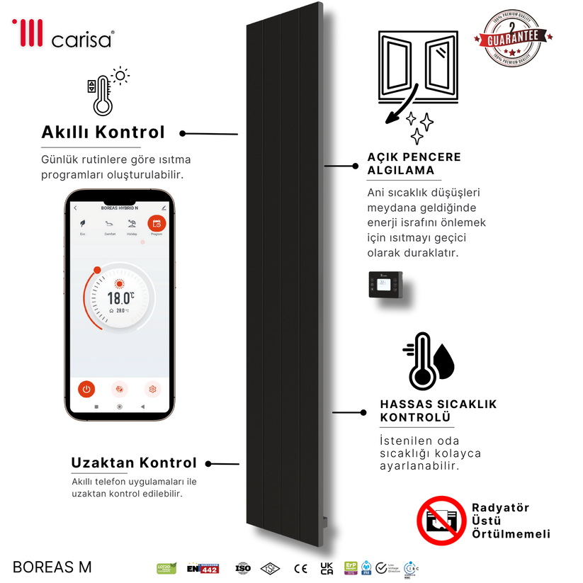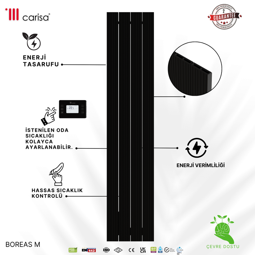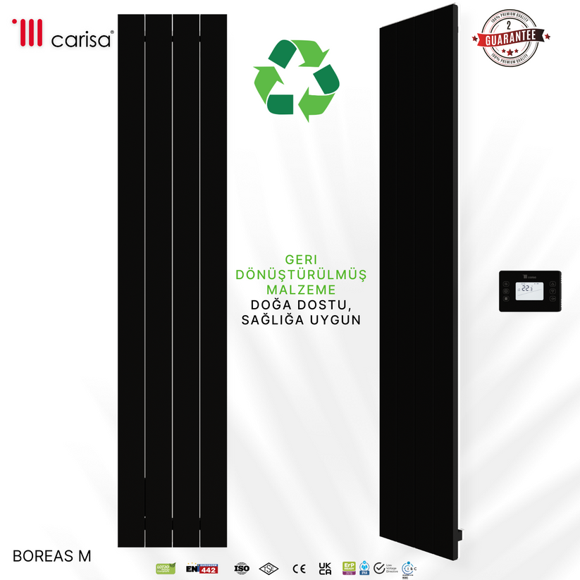 Carisa Boreas M Dikey Elektrikli Radyatör Modern Tasarım Siyah