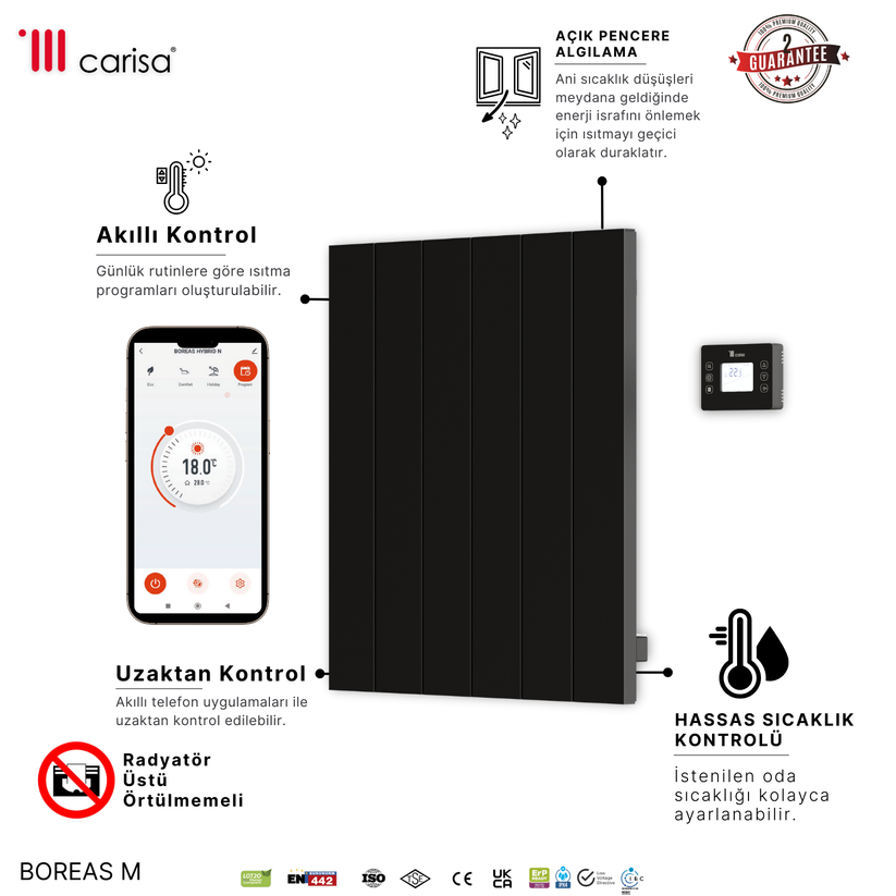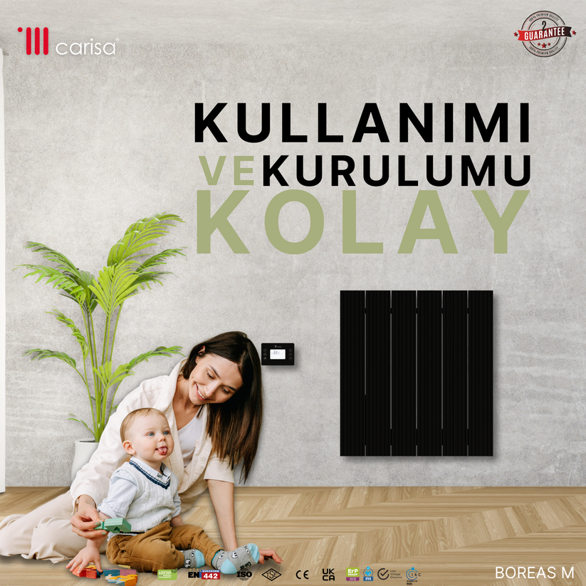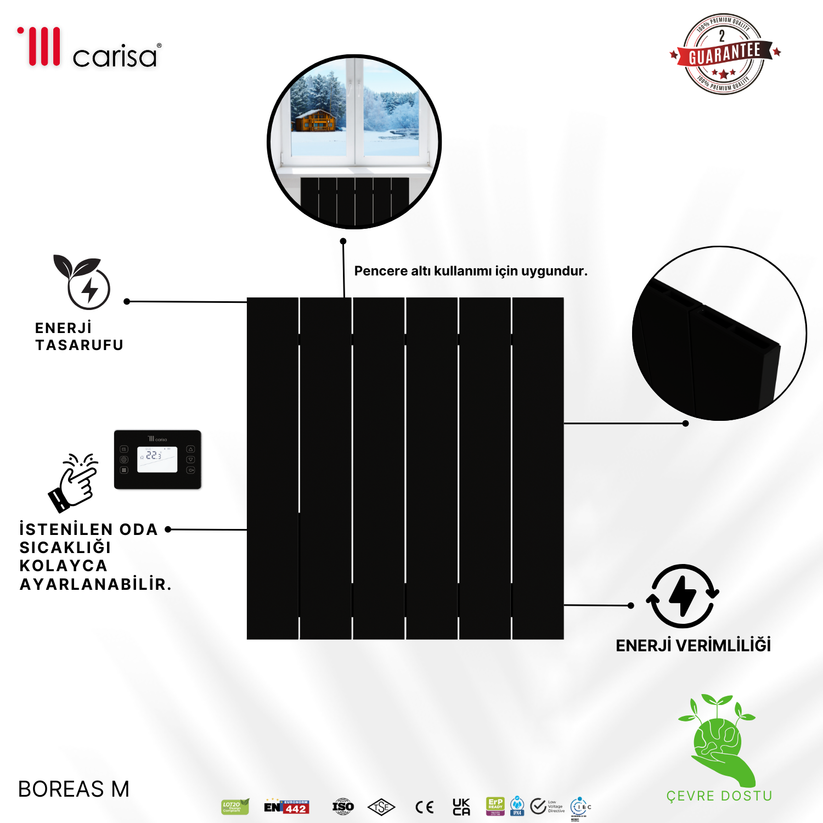 Carisa Boreas M Yatay Elektrikli Radyatör Modern Tasarım Siyah