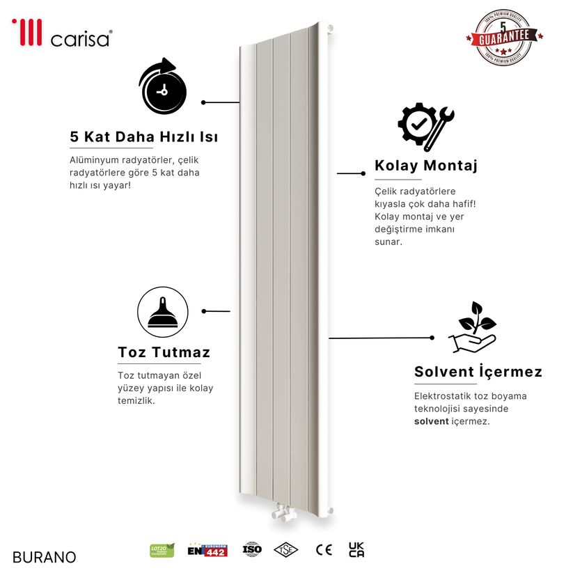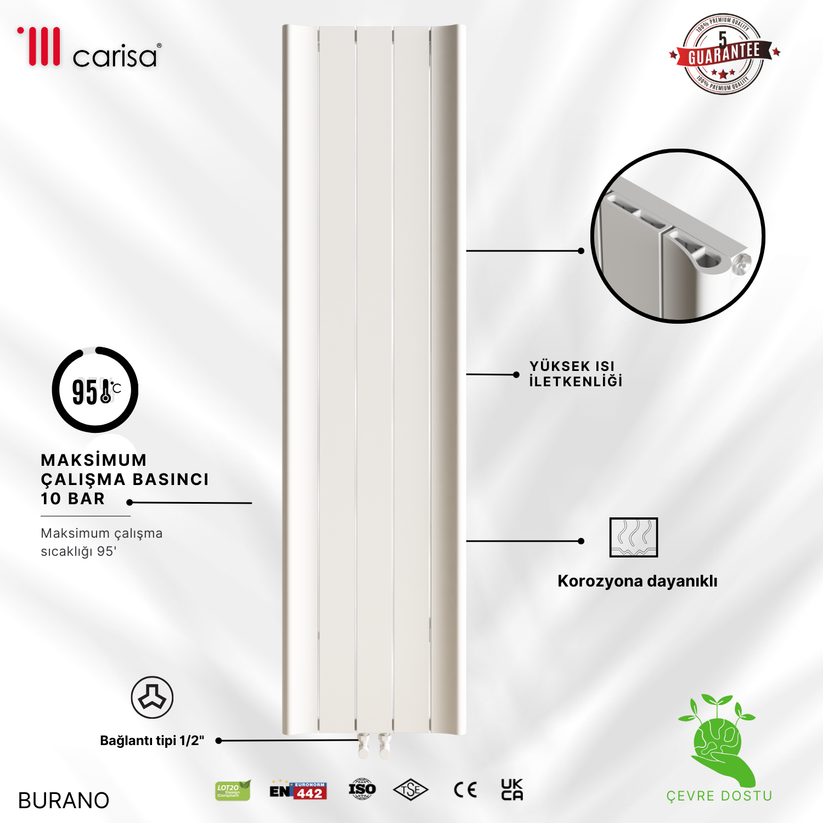 Carisa Burano Dikey Alüminyum Radyatör Modern Tasarım Beyaz