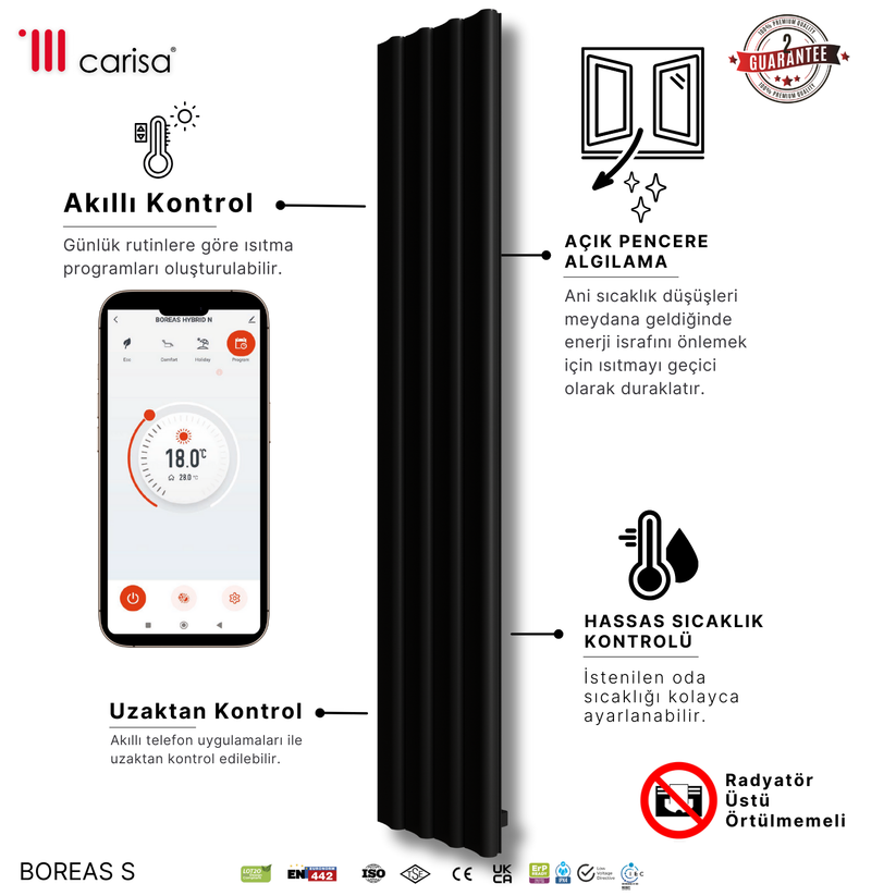Carisa Burano S Dikey Alüminyum Radyatör Modern Tasarım Antrasit
