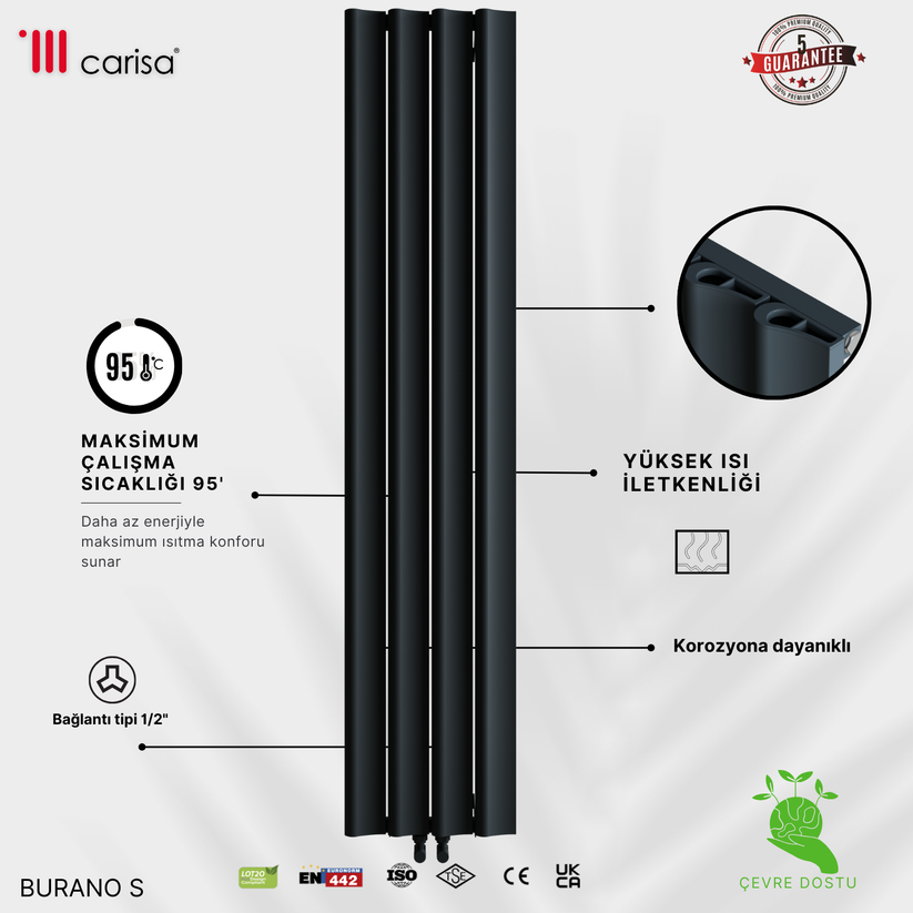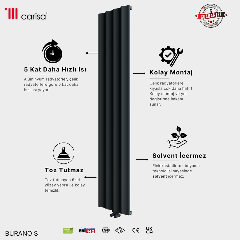 Carisa Burano S Dikey Alüminyum Radyatör Modern Tasarım Antrasit