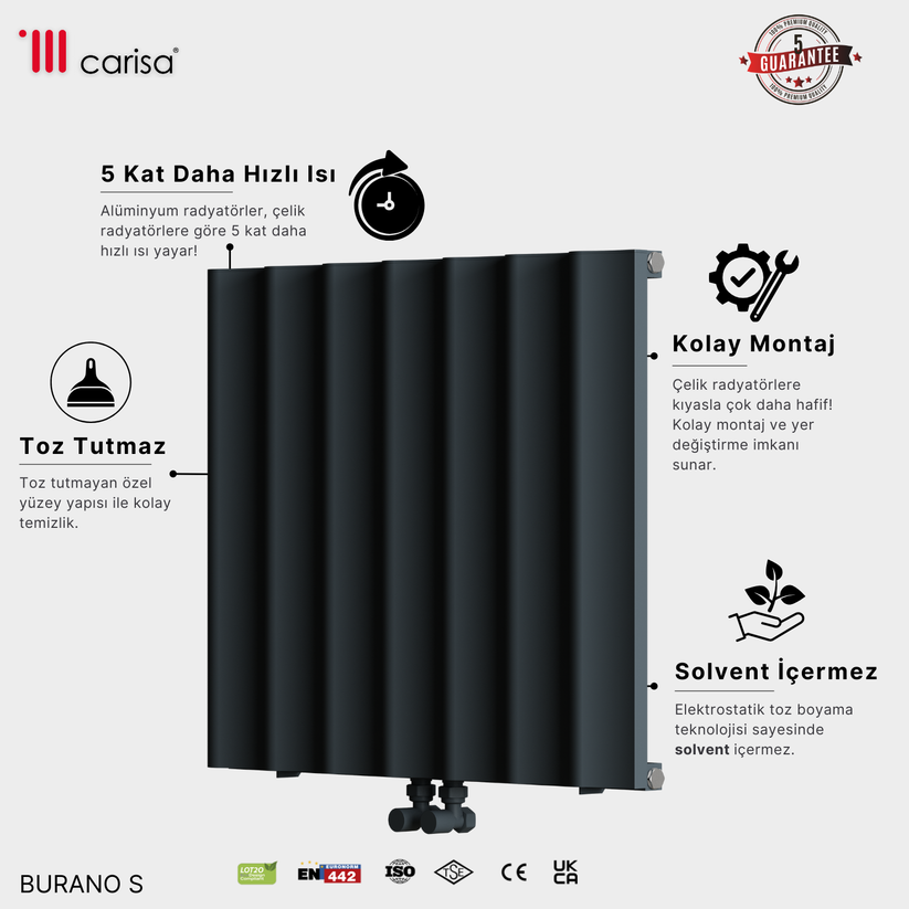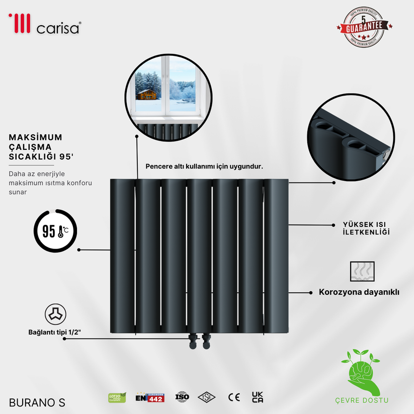 Carisa Burano S Yatay Alüminyum Radyatör Modern Tasarım Antrasit