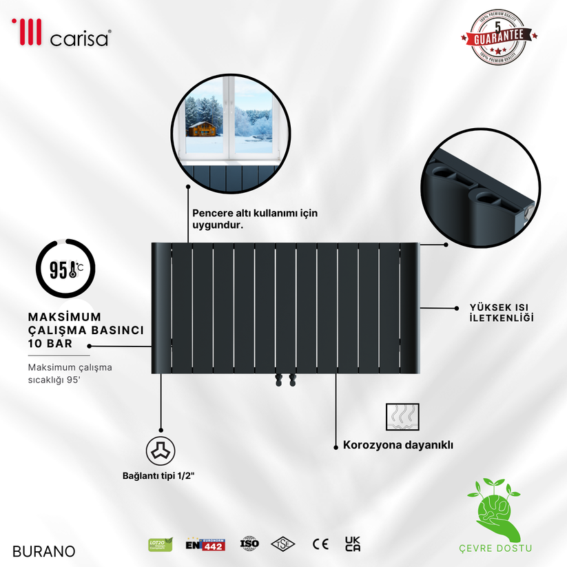Carisa Burano Yatay Alüminyum Radyatör Modern Tasarım Siyah