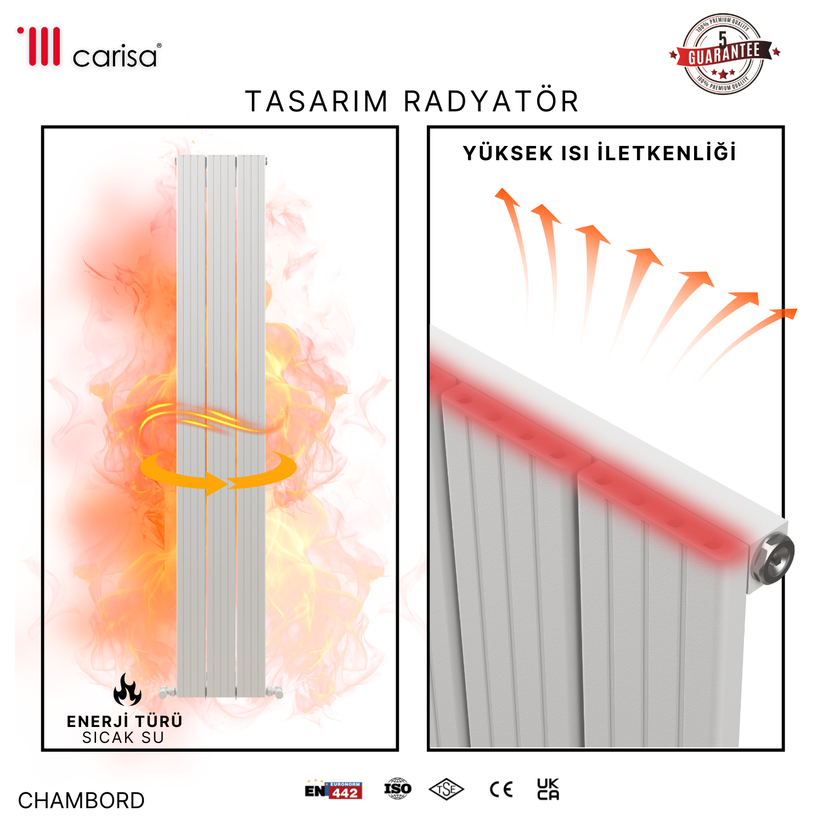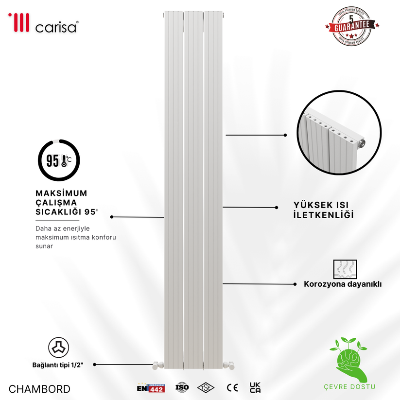 Carisa Chambord Dikey Alüminyum Radyatör Modern Tasarım Siyah