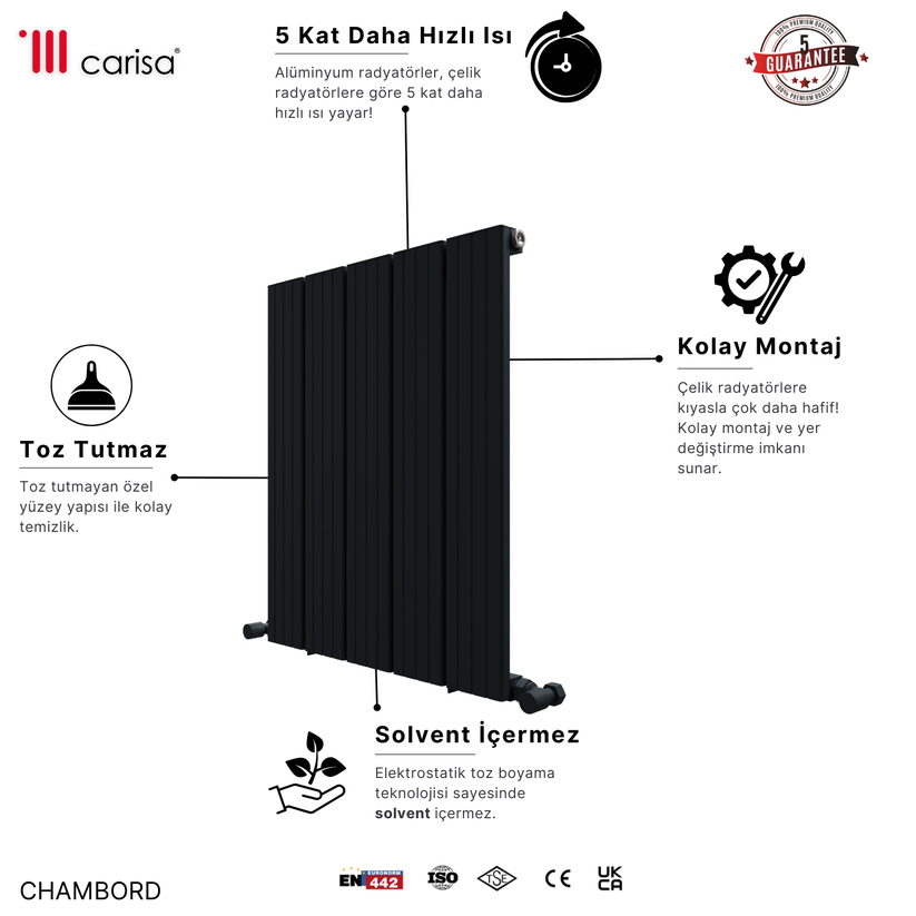 Carisa Chambord Yatay Alüminyum Radyatör Modern Tasarım Siyah