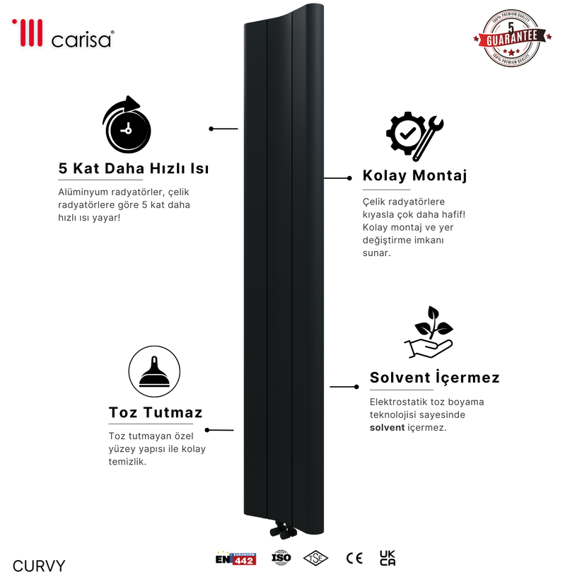 Carisa Curvy Dikey Alüminyum Radyatör Modern Tasarım Siyah