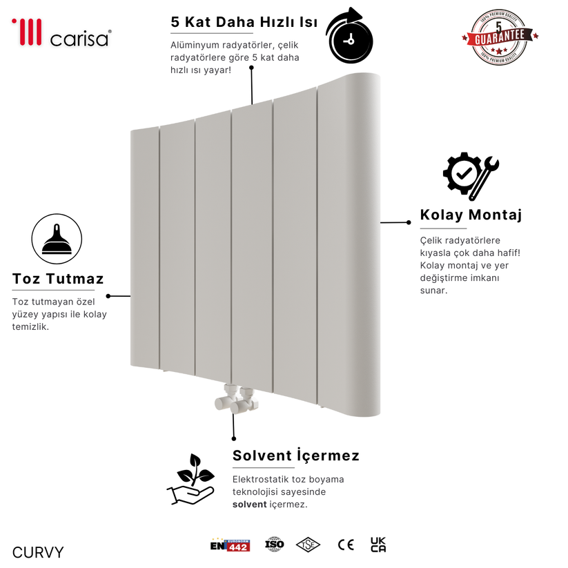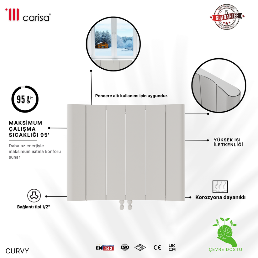 Carisa Curvy Yatay Alüminyum Radyatör Modern Tasarım Beyaz