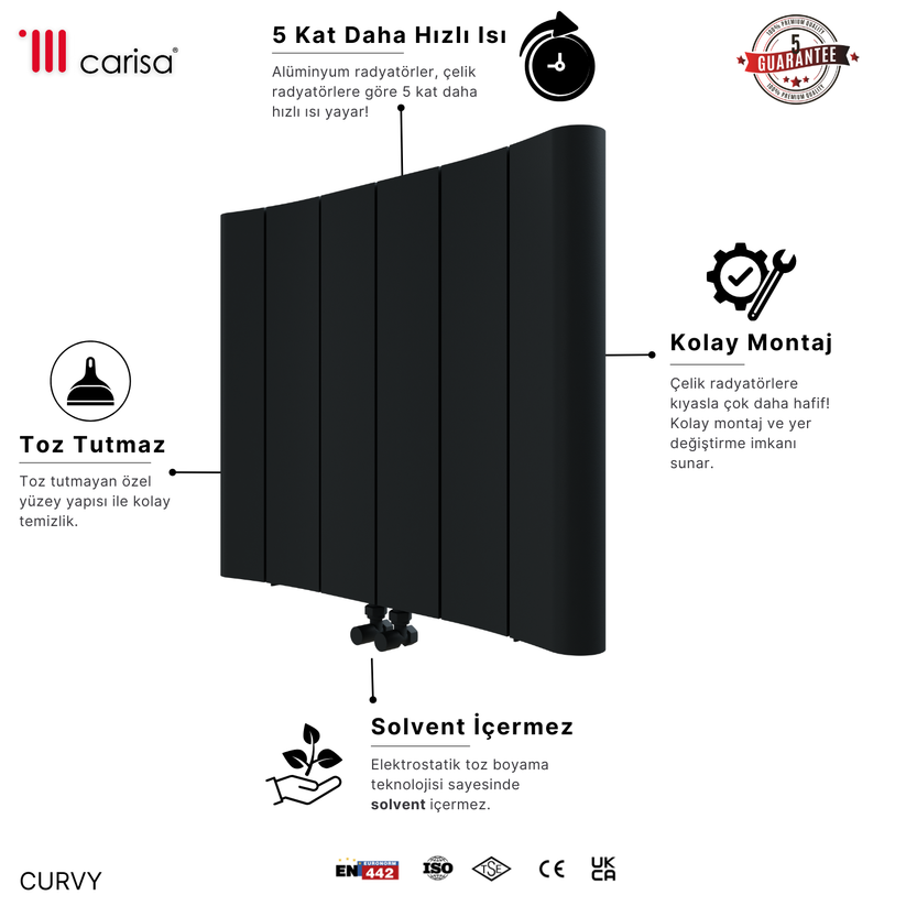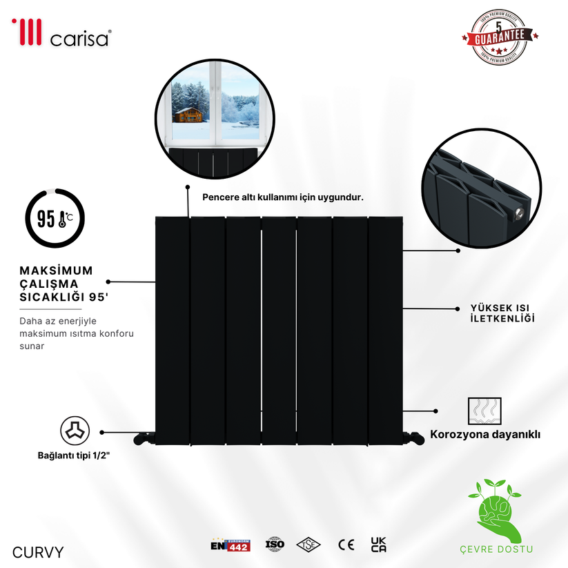 Carisa Curvy Yatay Alüminyum Radyatör Modern Tasarım Siyah
