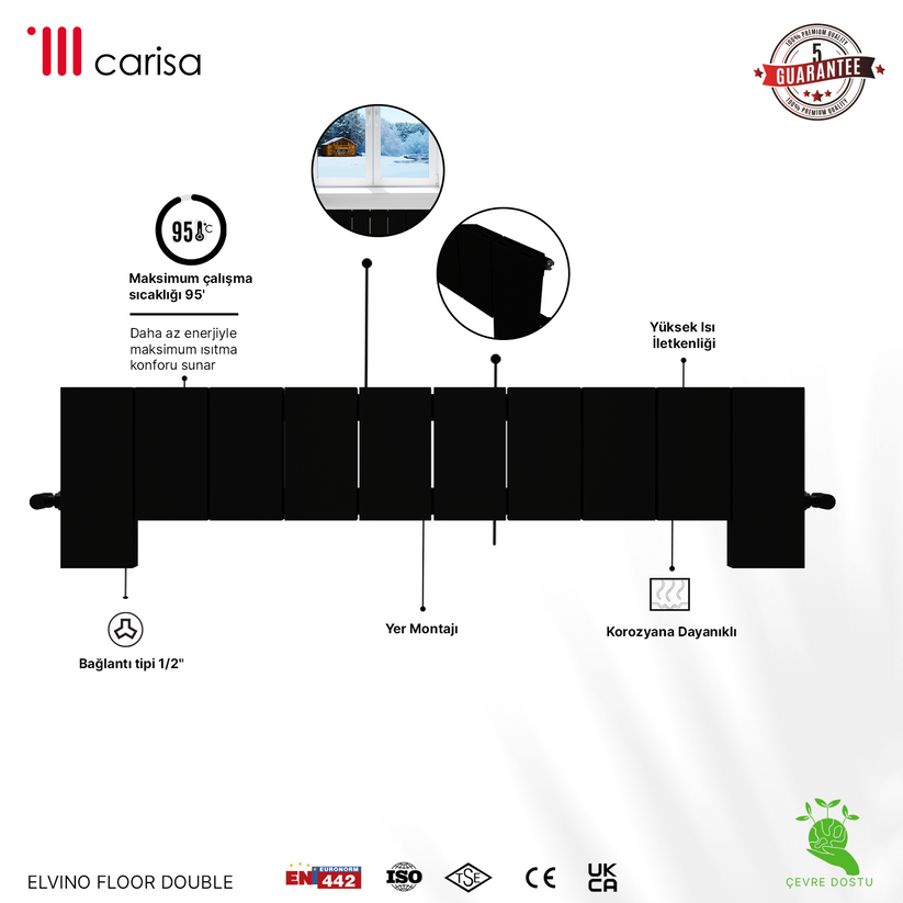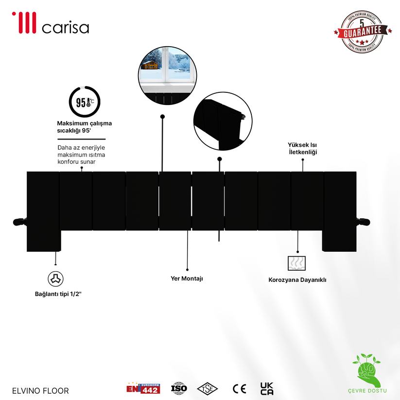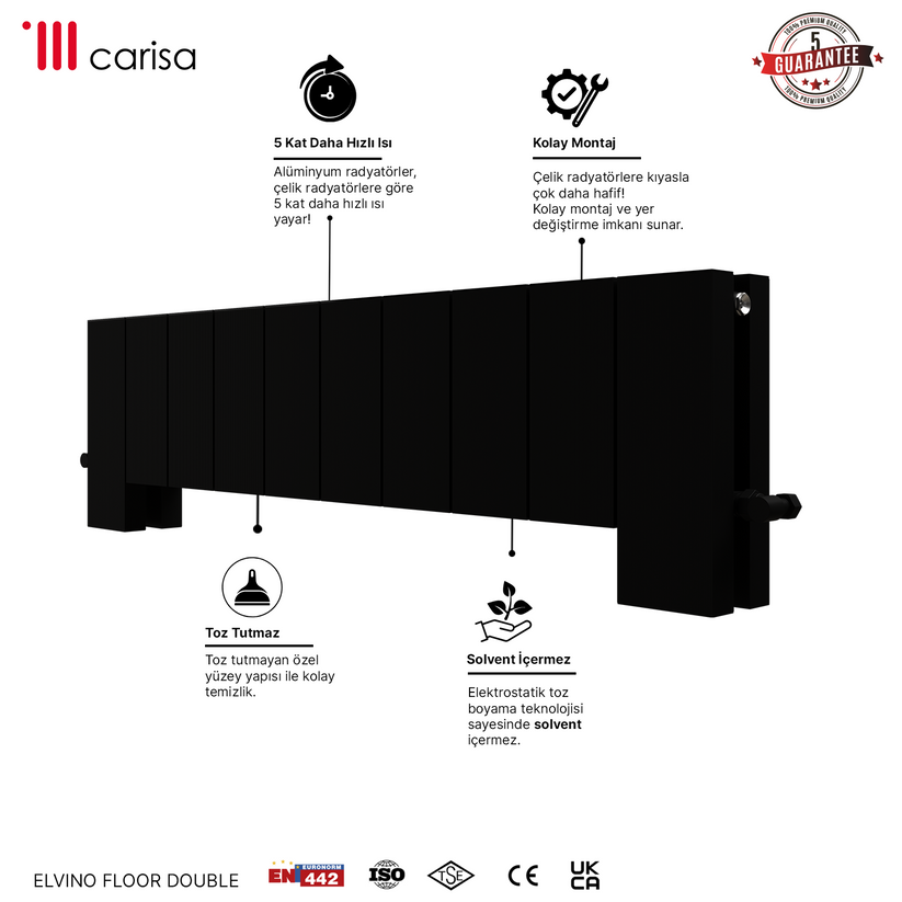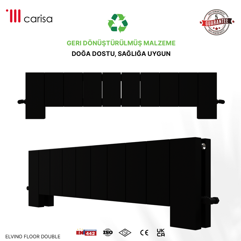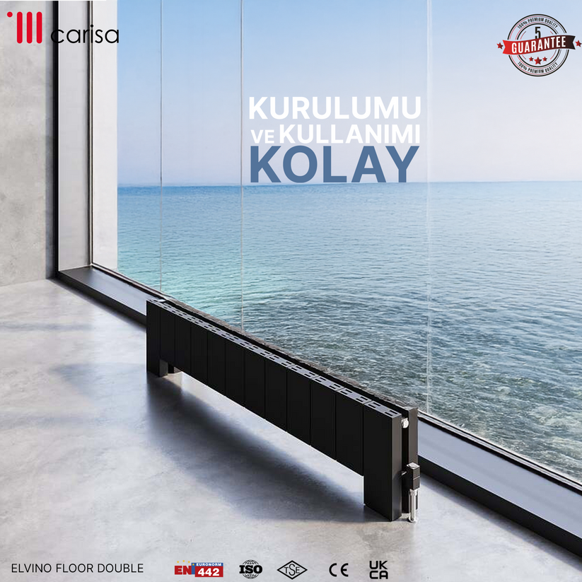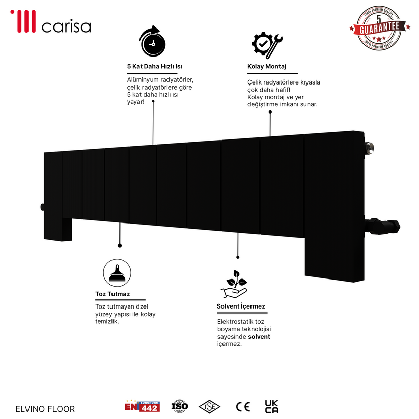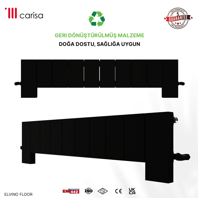 Carisa Elvino Floor Yatay Alüminyum Radyatör Modern Tasarım Siyah