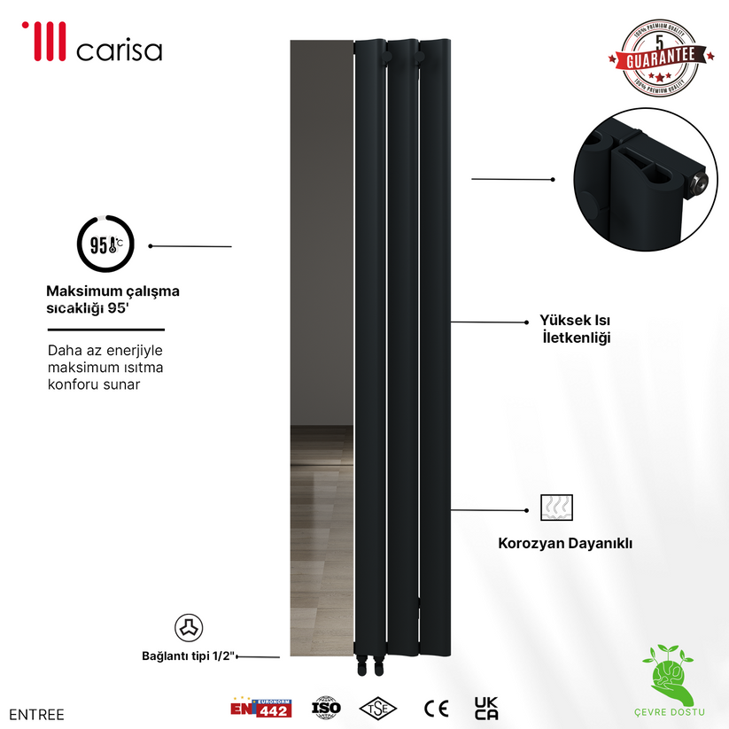 Carisa Entree Dikey Alüminyum Radyatör Modern Tasarım Antrasit