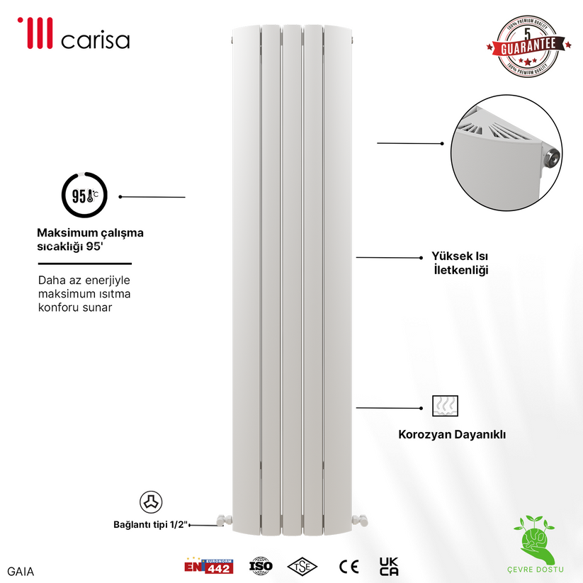 Carisa Gaia Dikey Alüminyum Radyatör Modern Tasarım Beyaz