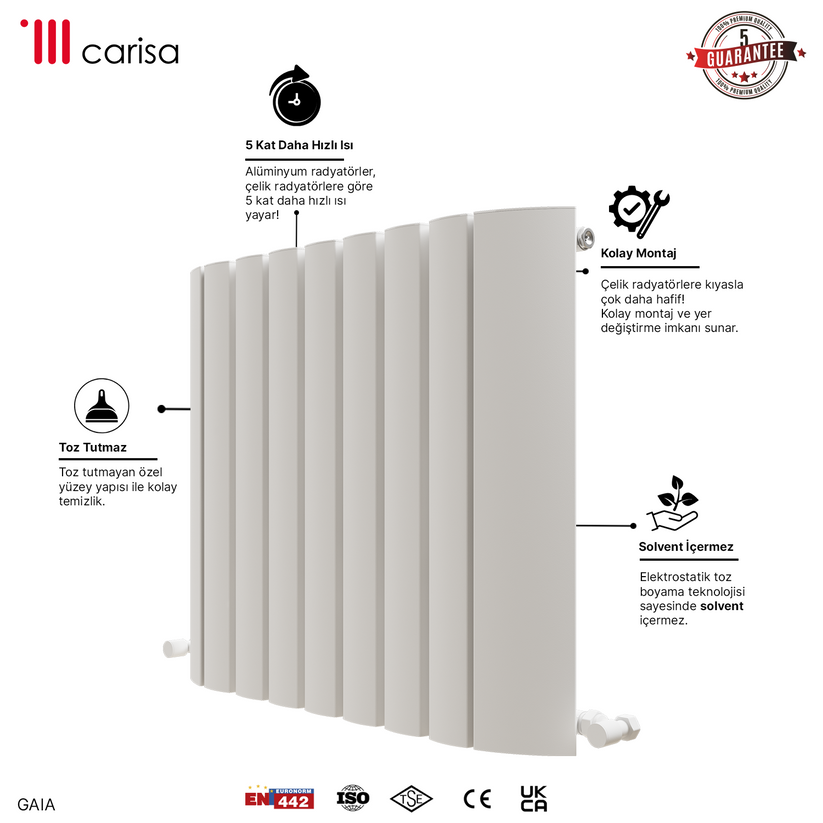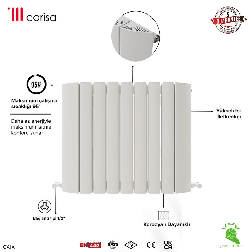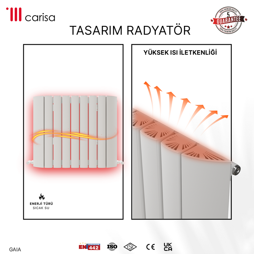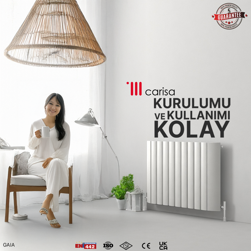 Carisa Gaia Yatay Alüminyum Radyatör Modern Tasarım Beyaz
