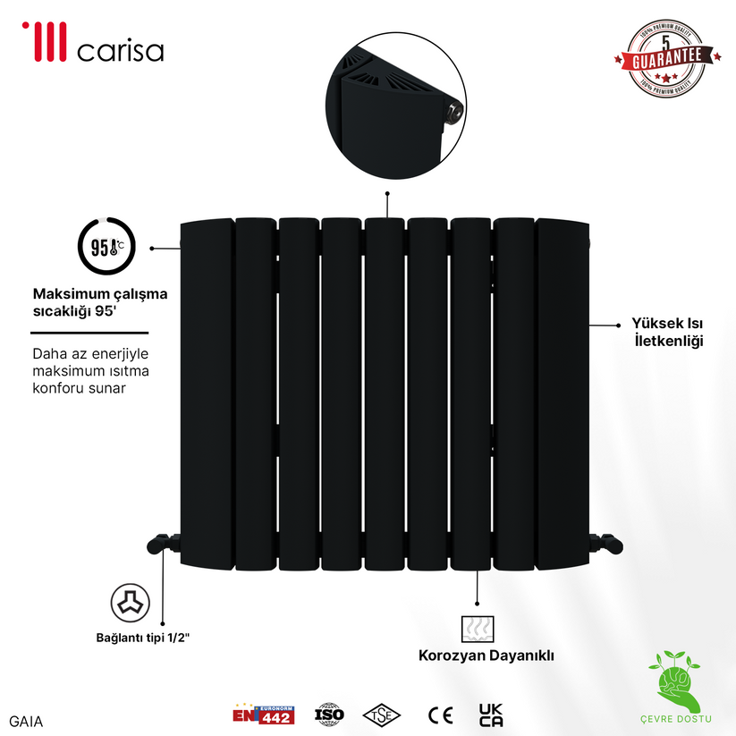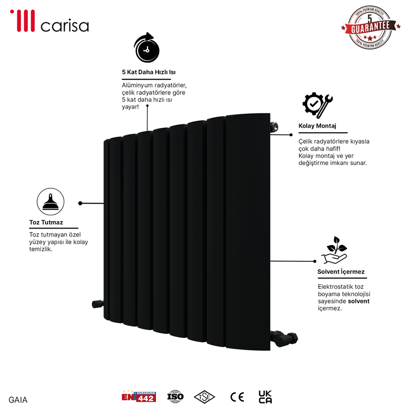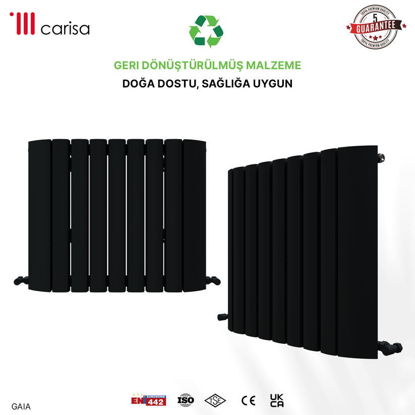 Carisa Gaia Yatay Alüminyum Radyatör Modern Tasarım Siyah