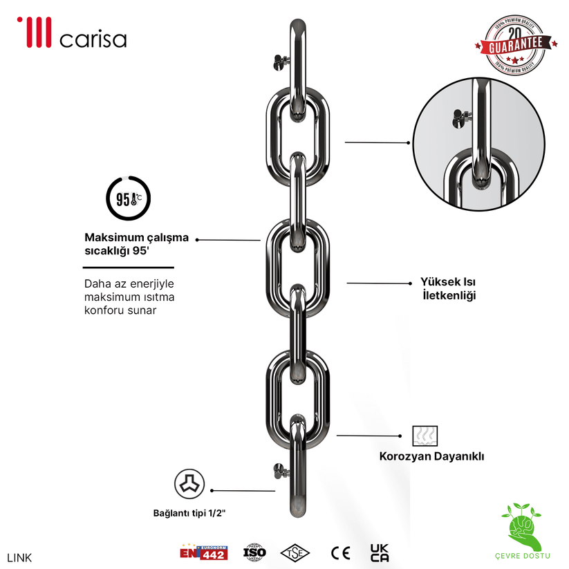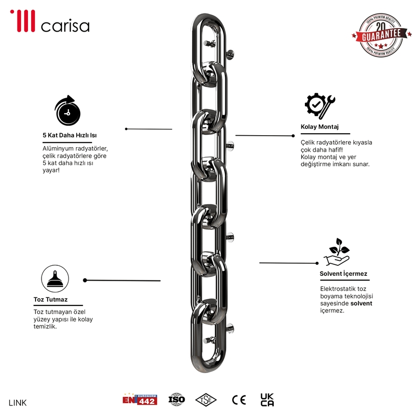 Carisa Link Dikey Paslanmaz Çelik Radyatör Modern Tasarım Ayna Polisaj