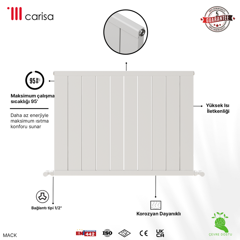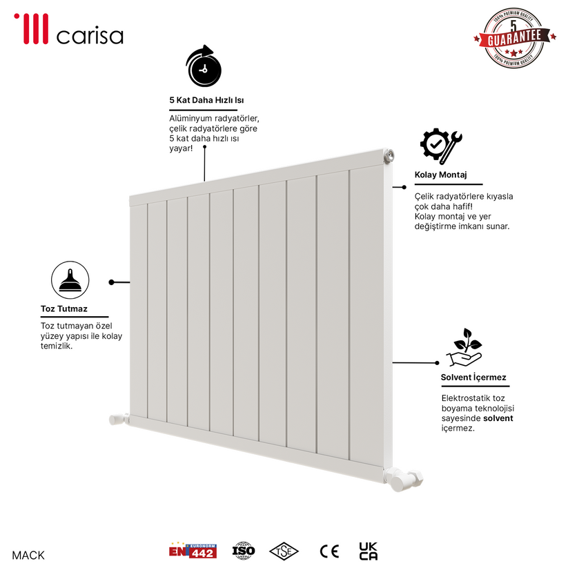 Carisa Mack Yatay Alüminyum Radyatör Modern Tasarım Beyaz