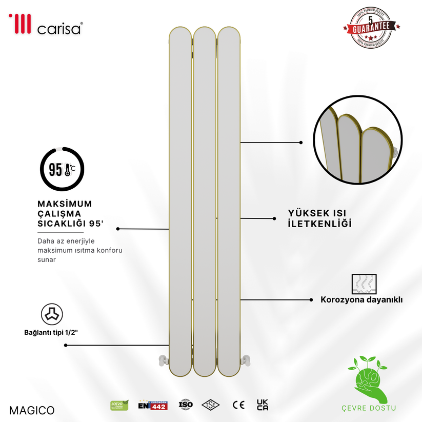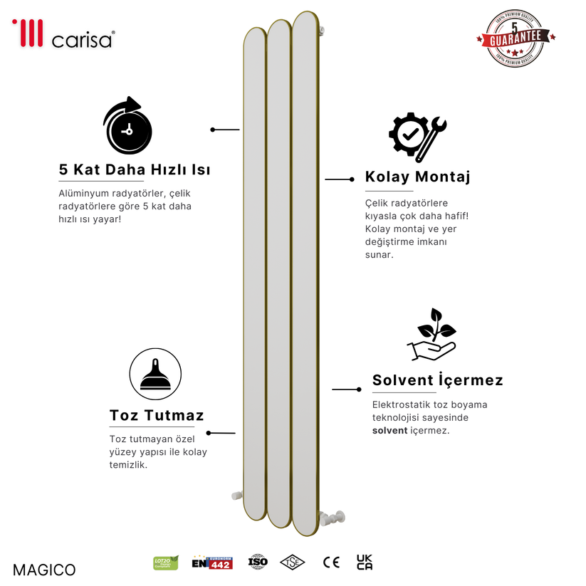 Carisa Magico Dikey Alüminyum Radyatör Modern Tasarım Beyaz