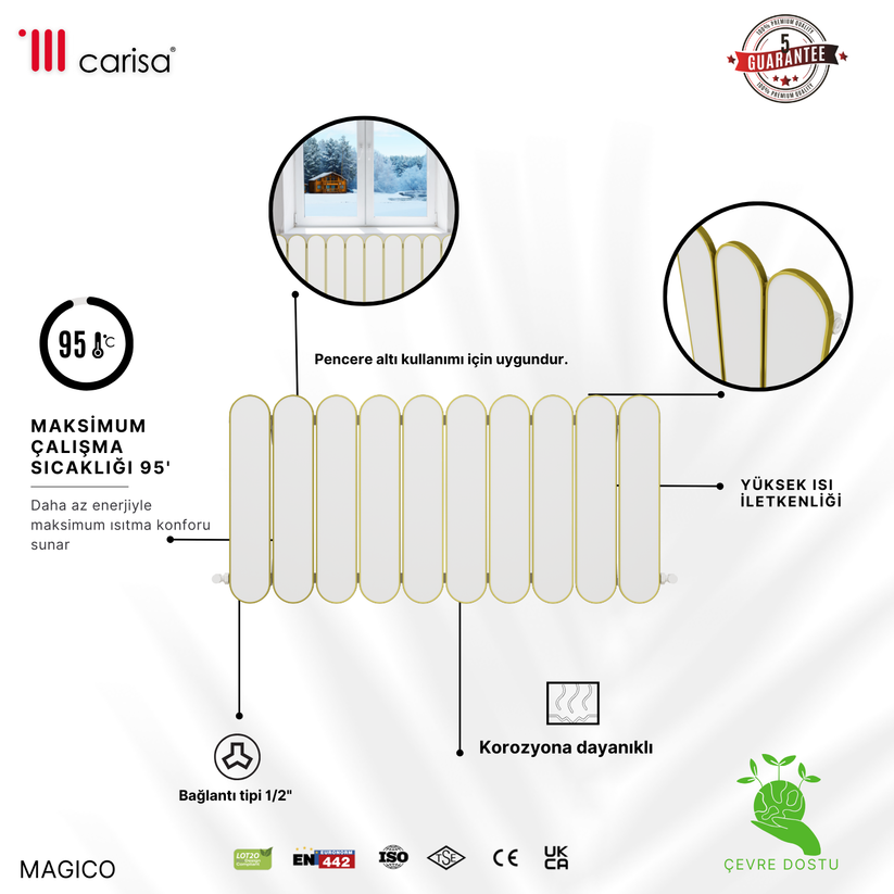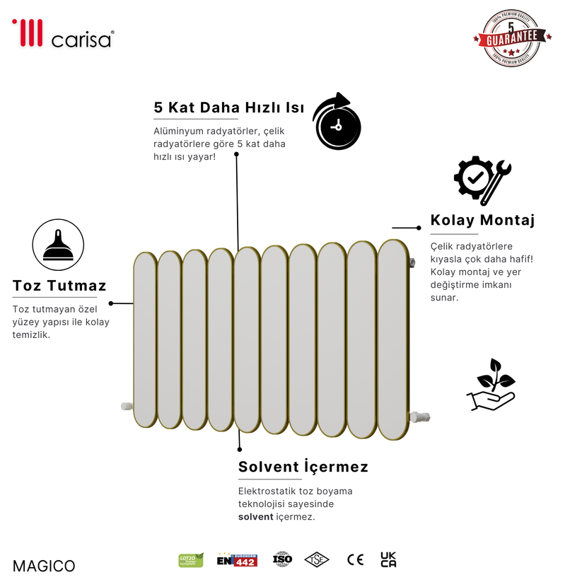 Carisa Magico Yatay Alüminyum Radyatör Modern Tasarım Beyaz