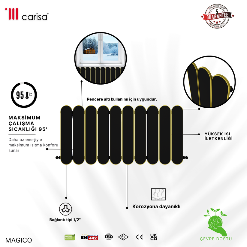 Carisa Magico Yatay Alüminyum Radyatör Modern Tasarım Siyah