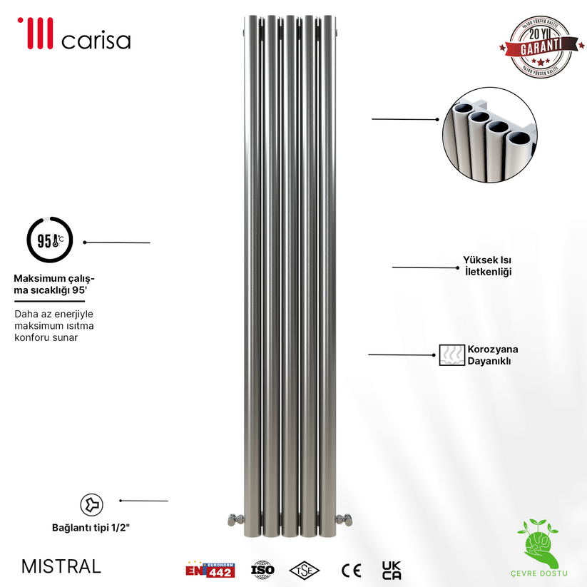 Carisa Mistral Dikey Paslanmaz Çelik Radyatör Modern Tasarım Satine