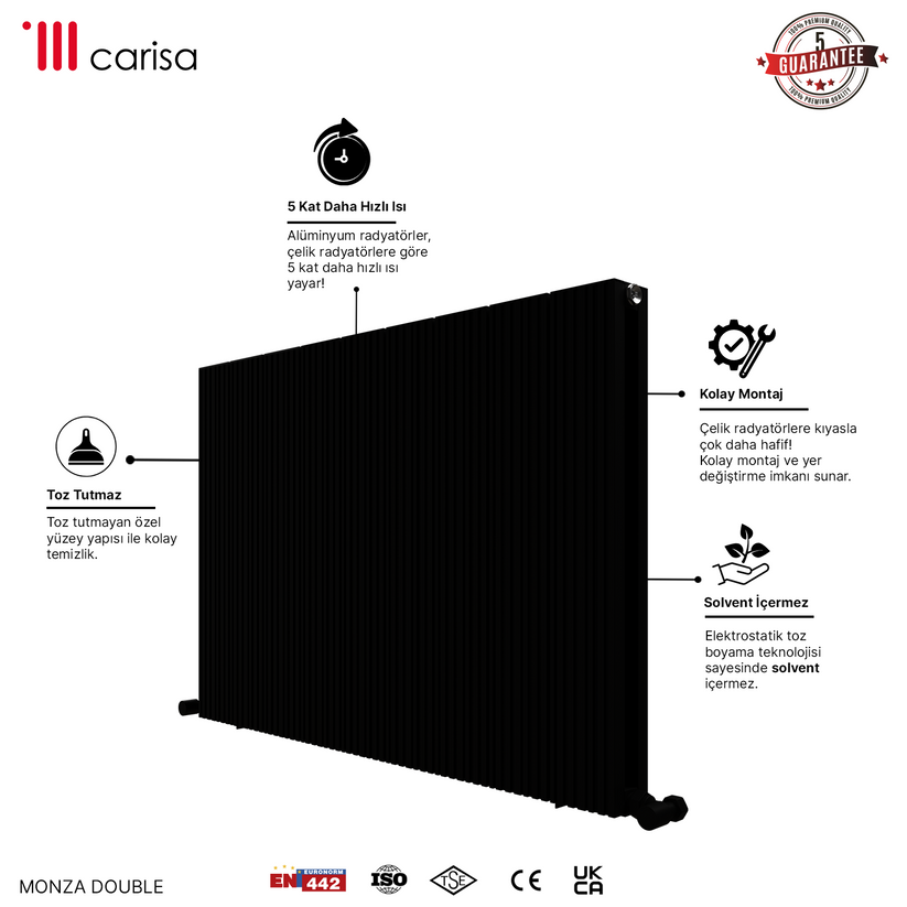 Carisa Monza Double Alüminyum Radyatör Siyah Standart Bağlantı