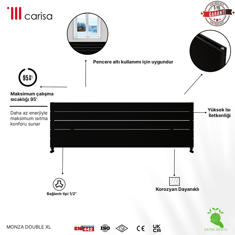 Carisa Monza Double Xl Yatay Alüminyum Radyatör Modern Tasarım Siyah