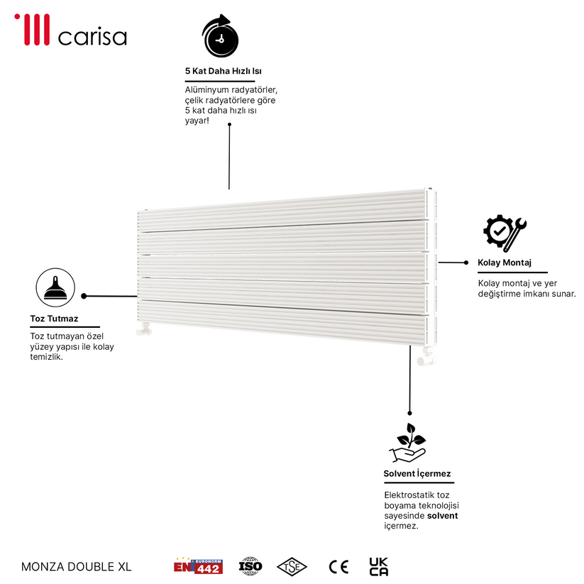 Carisa Monza Double Xl Yatay Alüminyum Radyatör Modern Tasarım Beyaz