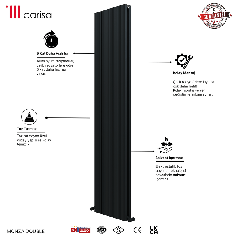 Carisa Monza Dikey Alüminyum Radyatör Modern Tasarım Antrasit