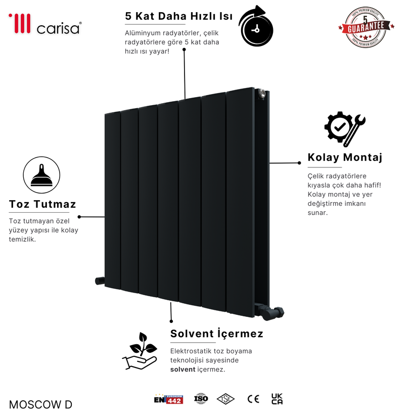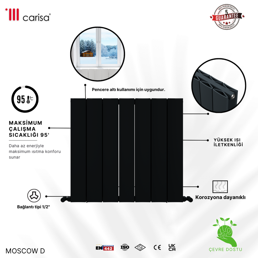 Carisa Moscow D Yatay Alüminyum Radyatör Modern Tasarım Antrasit