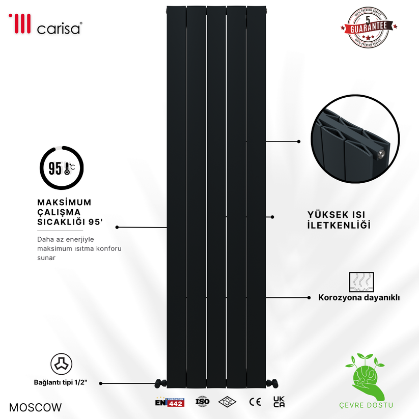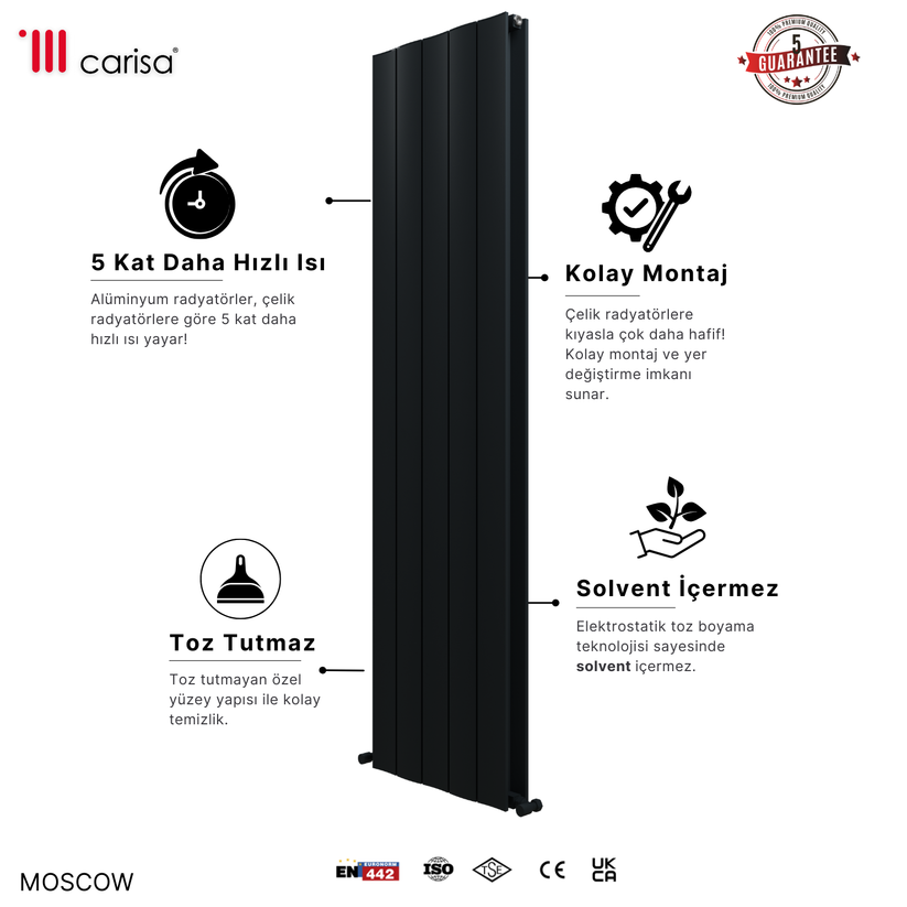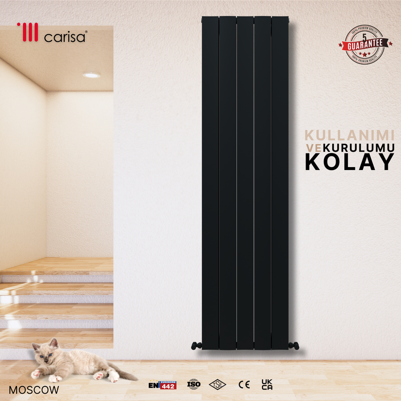 Carisa Moscow Dikey Alüminyum Radyatör Modern Tasarım Siyah