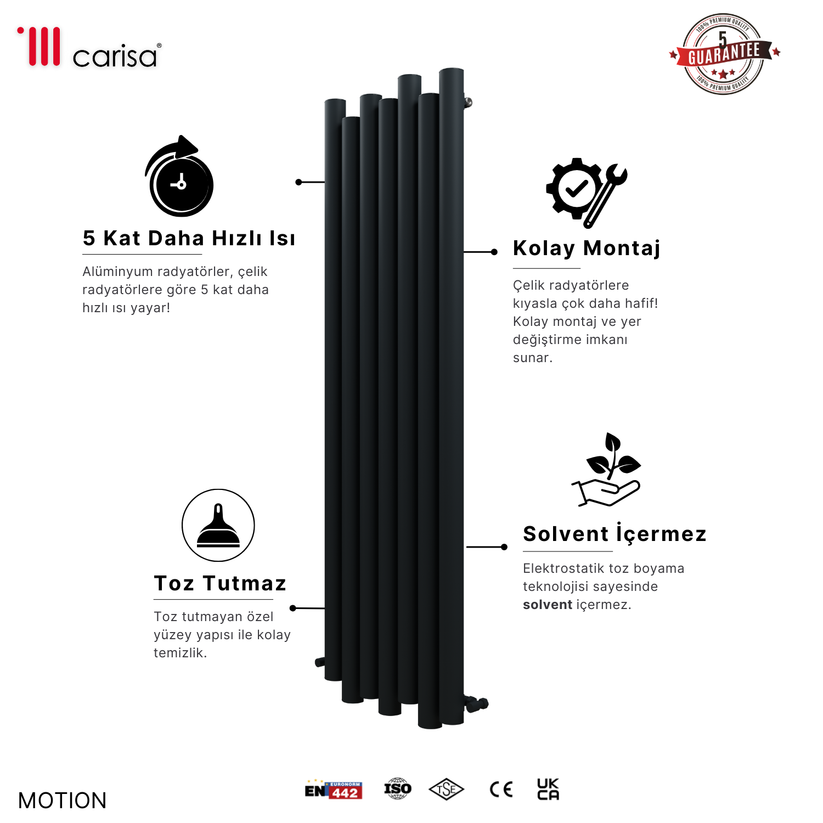Carisa Motion Dikey Alüminyum Radyatör Modern Tasarım Antrasit