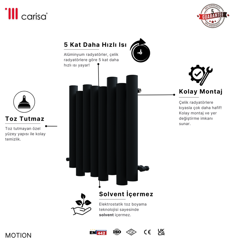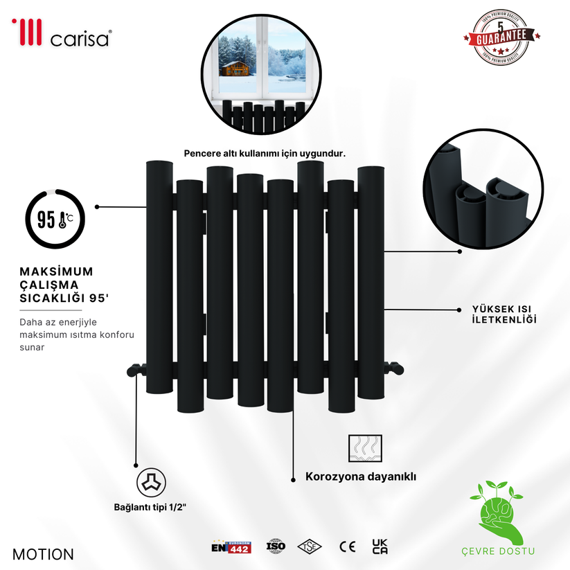 Carisa Motion Yatay Alüminyum Radyatör Modern Tasarım Siyah