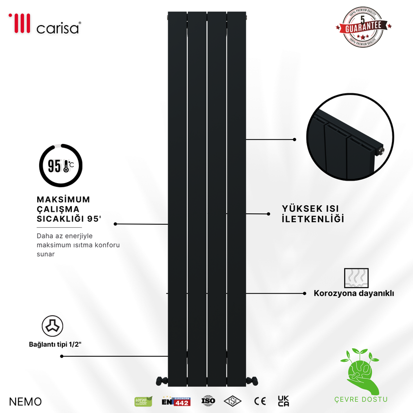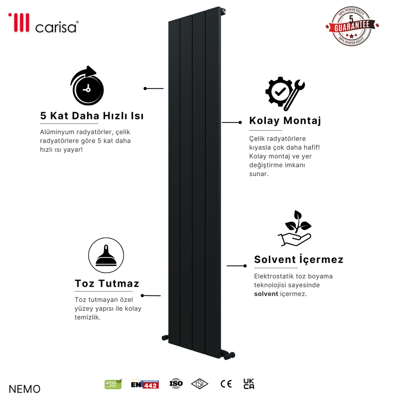 Carisa Nemo Dikey Alüminyum Radyatör Modern Tasarım Antrasit