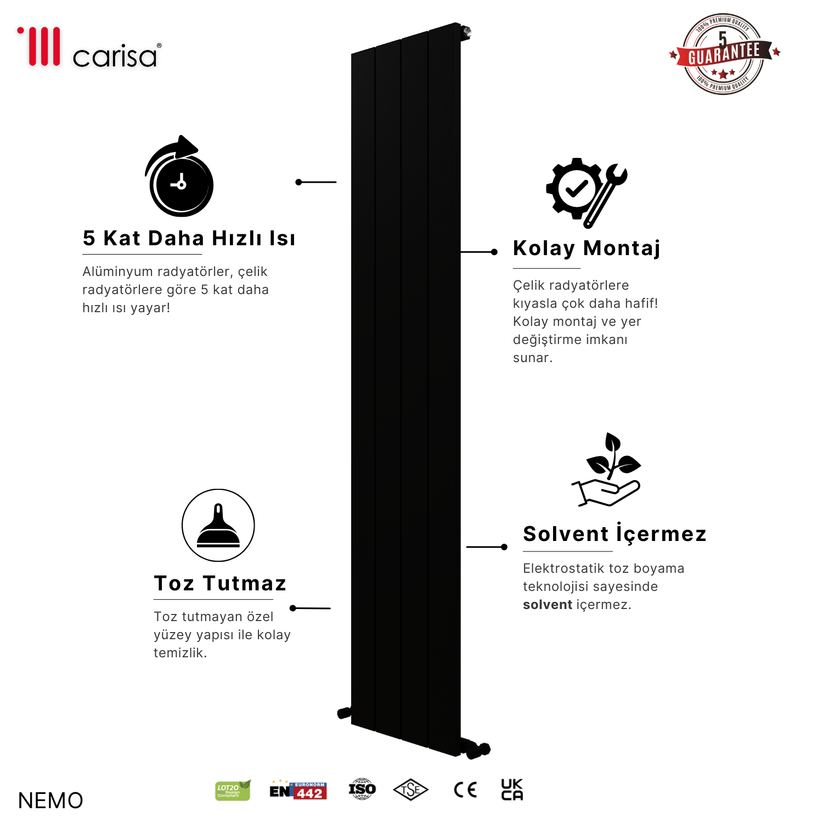 Carisa Nemo Dikey Alüminyum Radyatör Modern Tasarım Siyah