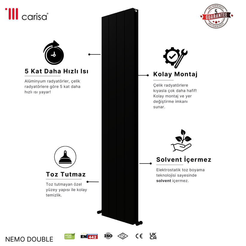Carisa Nemo Double Alüminyum Radyatör Siyah Standart Bağlantı