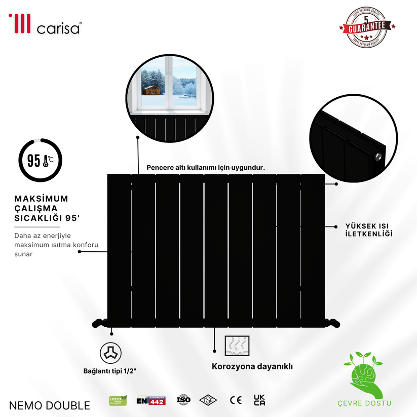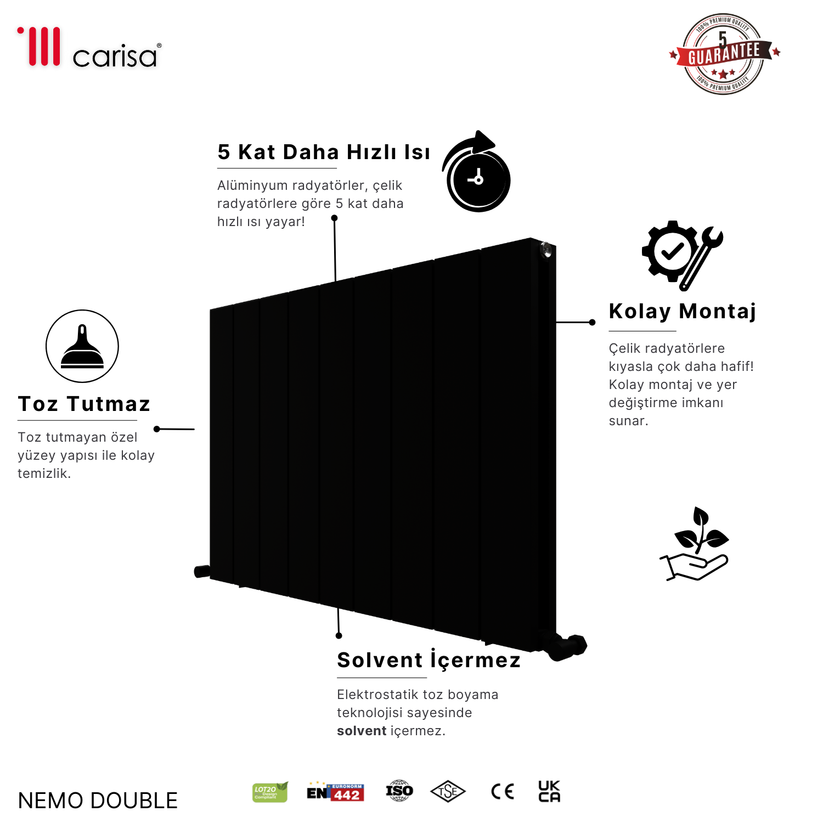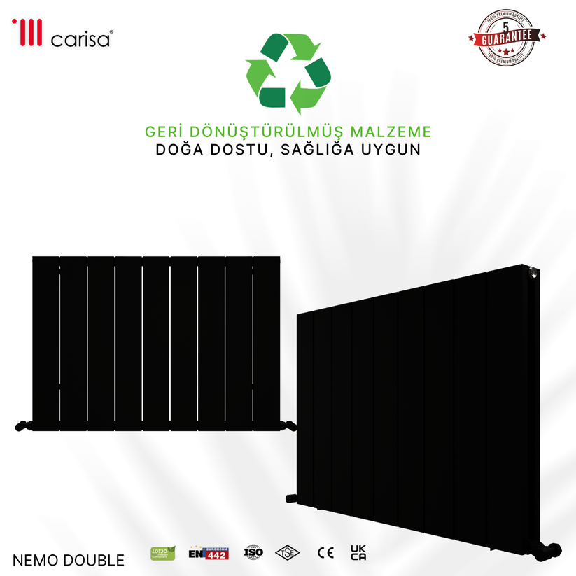 Carisa Nemo Double Alüminyum Radyatör Siyah Standart Bağlantı