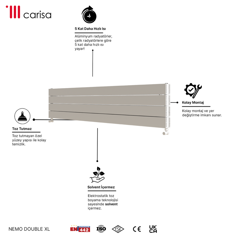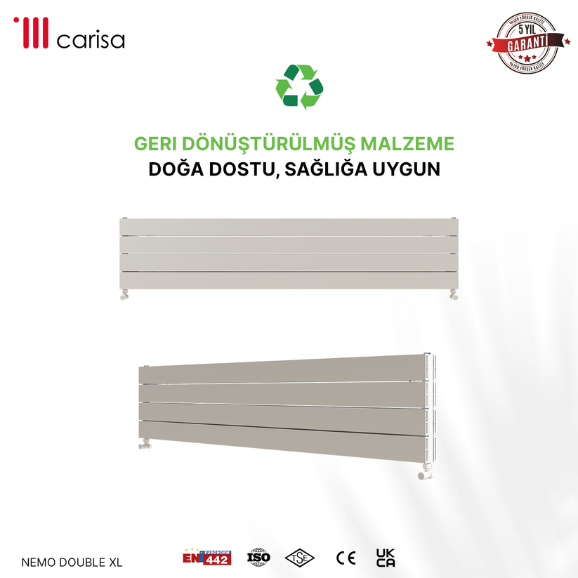 Carisa Nemo Double Xl Yatay Alüminyum Radyatör Modern Tasarım Beyaz