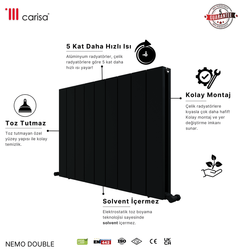 Carisa Nemo Yatay Alüminyum Radyatör Modern Tasarım Antrasit