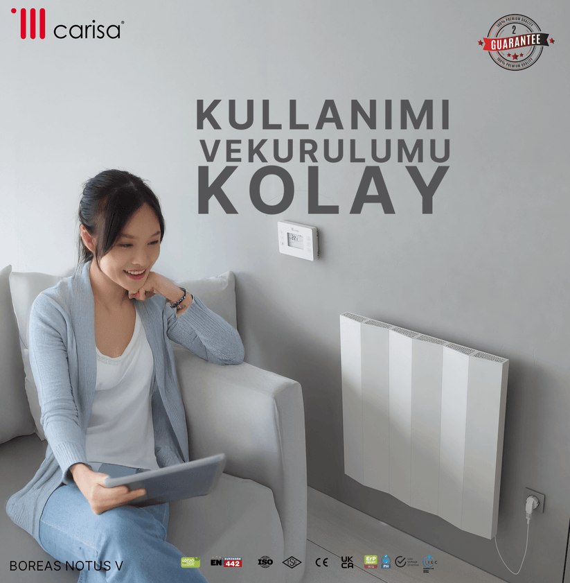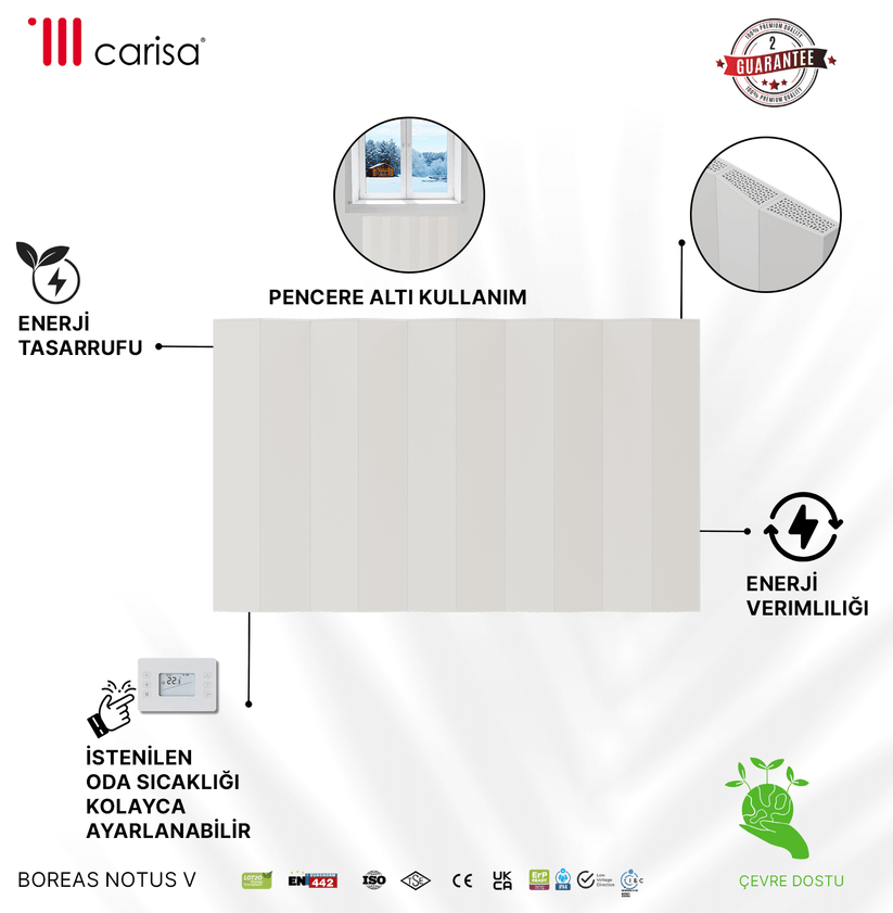 Carisa Notus V Yatay Elektrikli Radyatör Modern Tasarım Beyaz
