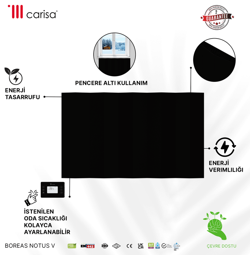Carisa Notus V Yatay Elektrikli Radyatör Modern Tasarım Siyah