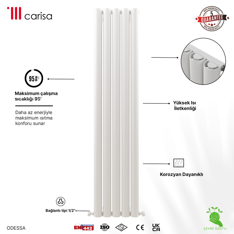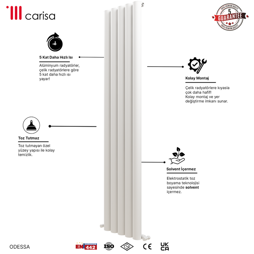 Carisa Odessa Dikey Alüminyum Radyatör Modern Tasarım Beyaz
