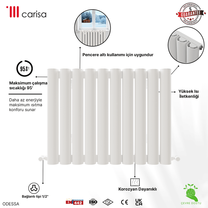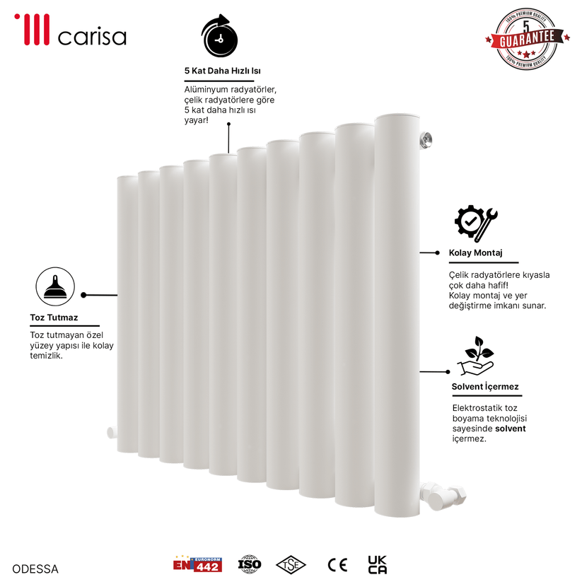 Carisa Odessa Yatay Alüminyum Radyatör Modern Tasarım Beyaz