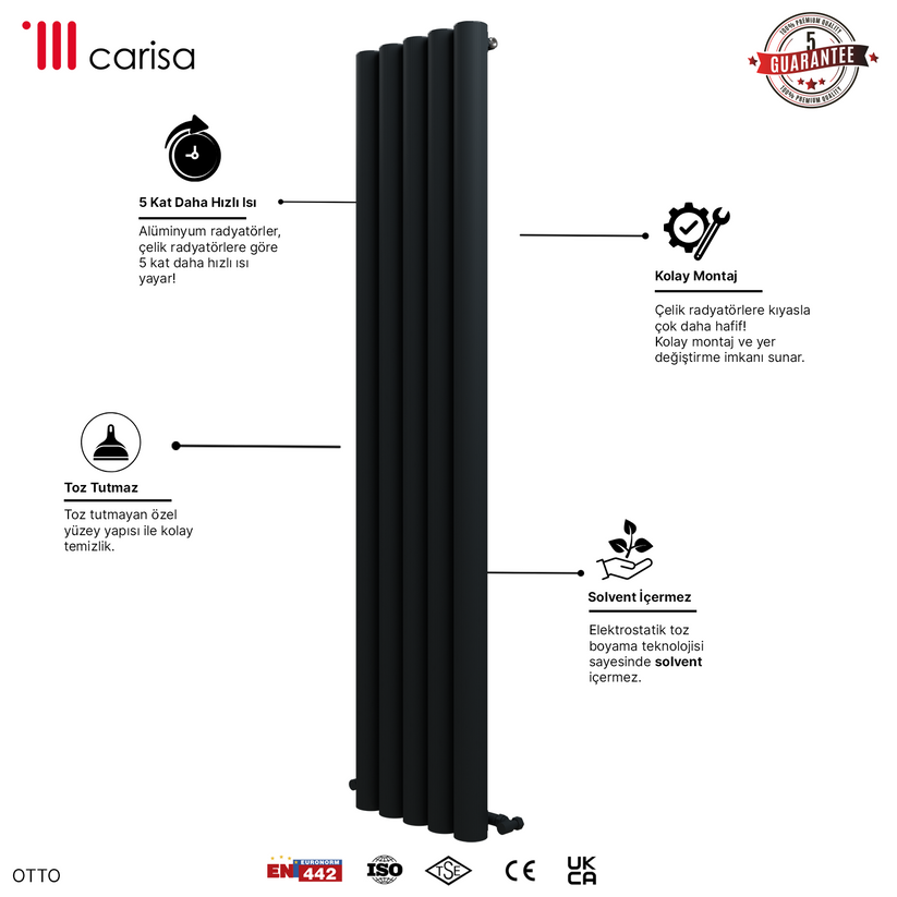 Carisa Otto Dikey Alüminyum Radyatör Modern Tasarım Siyah